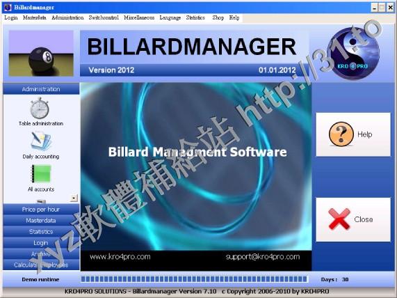 Billardmanager v7.10 英文正式版(俱樂部管理軟體)