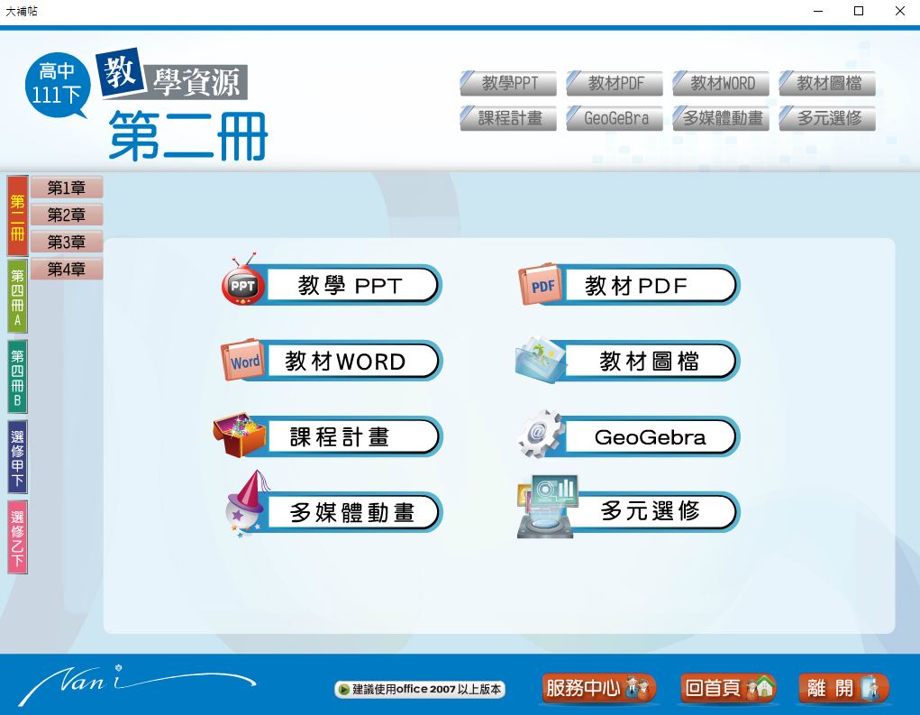 111學年下學期 高中大補帖 南一版 數學科(二、四A、四B、選修甲下、選修乙下) 教學光碟